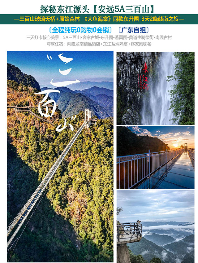 品名: 特价B【三百山-连住两晚龙南】3天2晚 编号: 39000000047