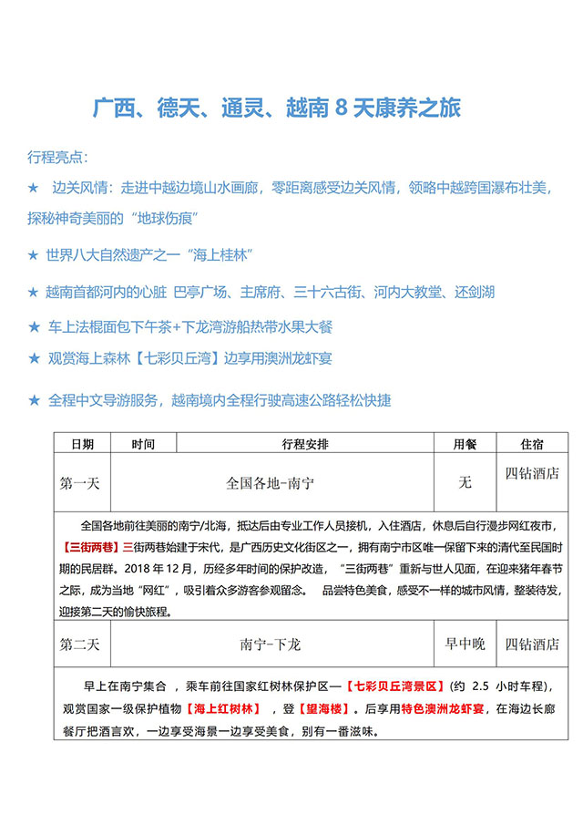 [品名/trade name]:广西德天、越南康养8日