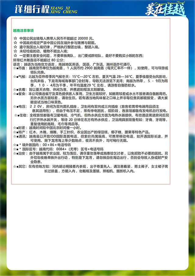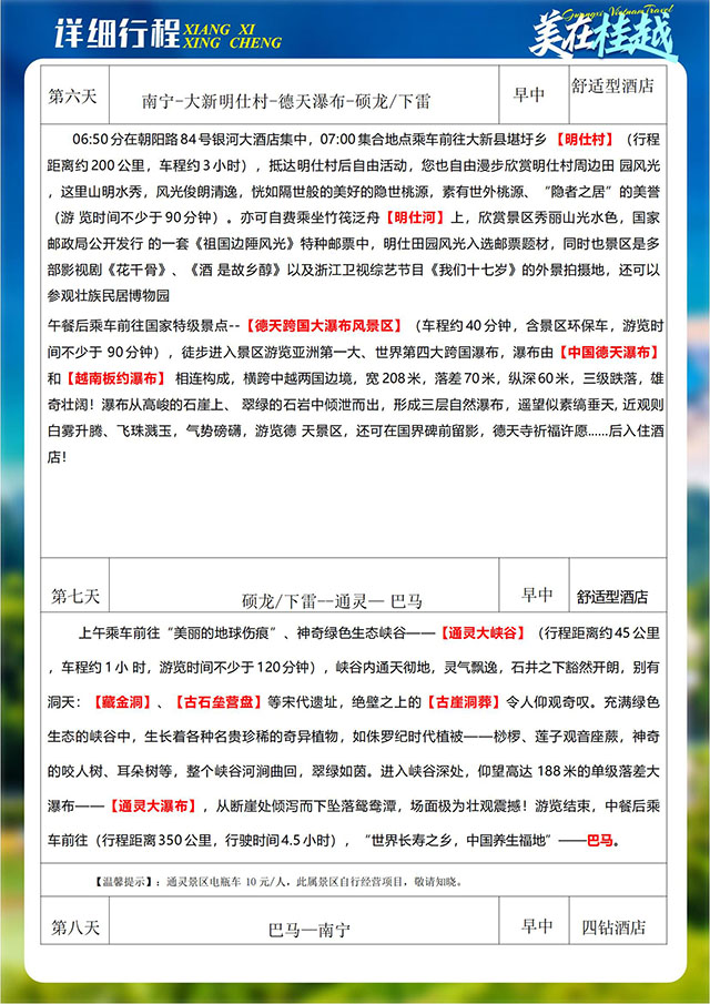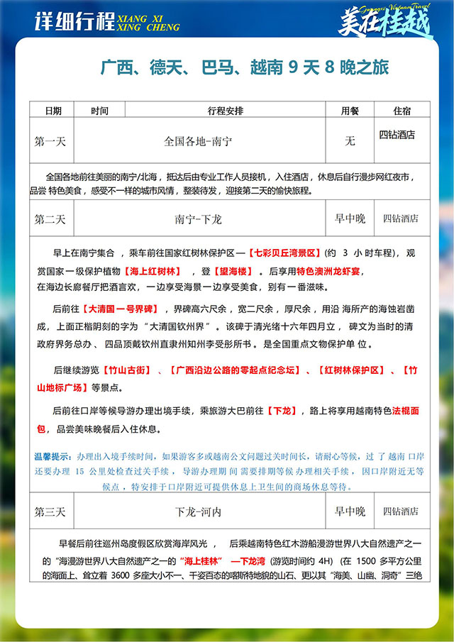 [品名/trade name]:美在桂越(广西、德天、巴马、越南9日)
