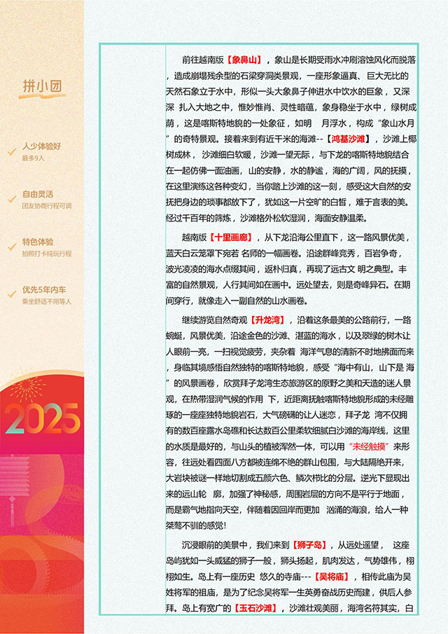 踏浪淘沙芽美胡5天 奇幻山海关8日 越南越美8日 千屿千寻6日