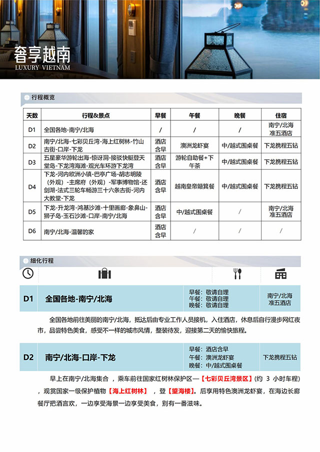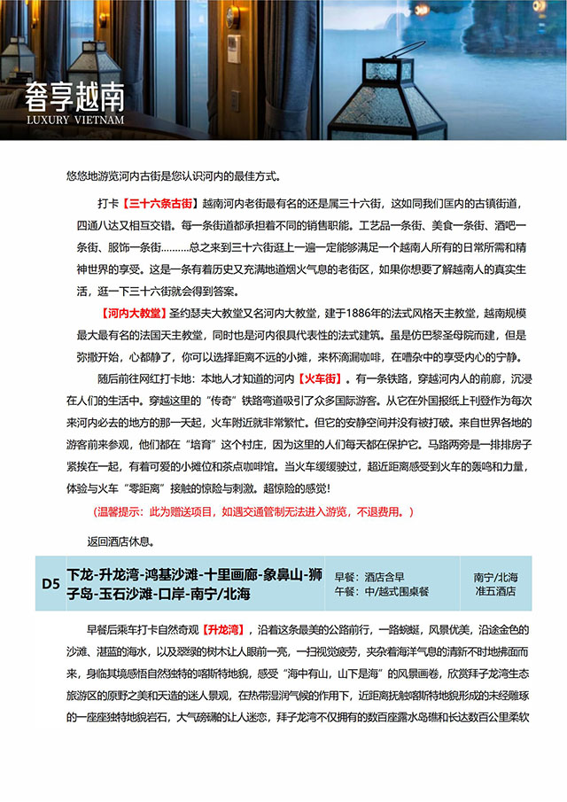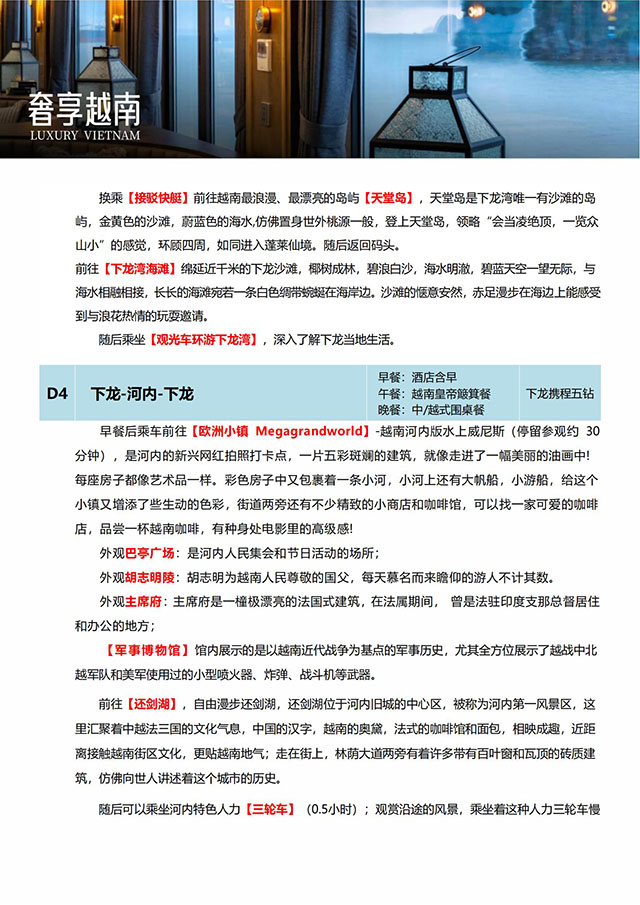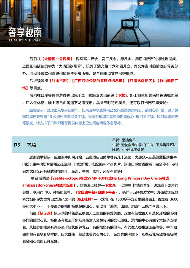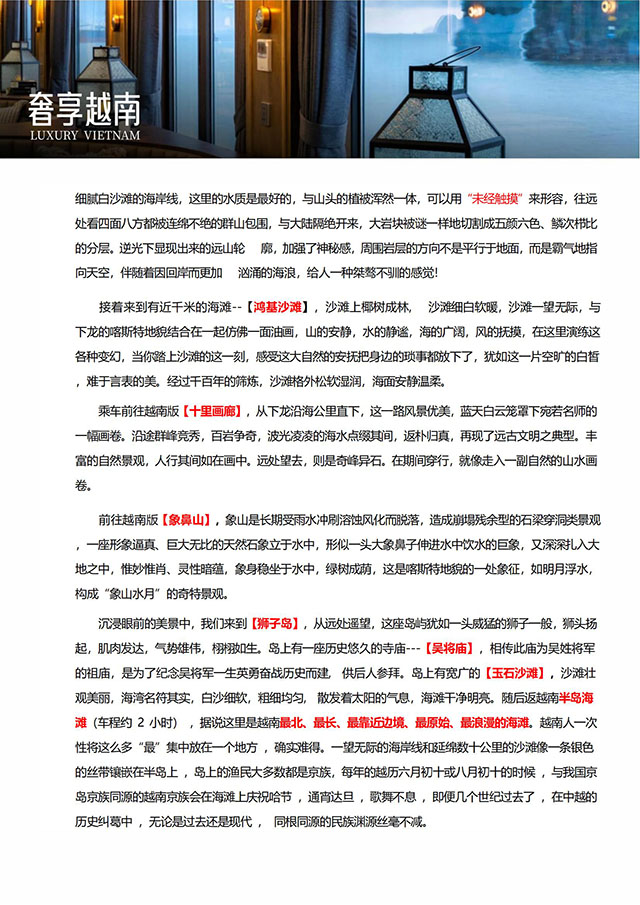踏浪淘沙芽美胡5天 奇幻山海关8日 越南越美8日 千屿千寻6日