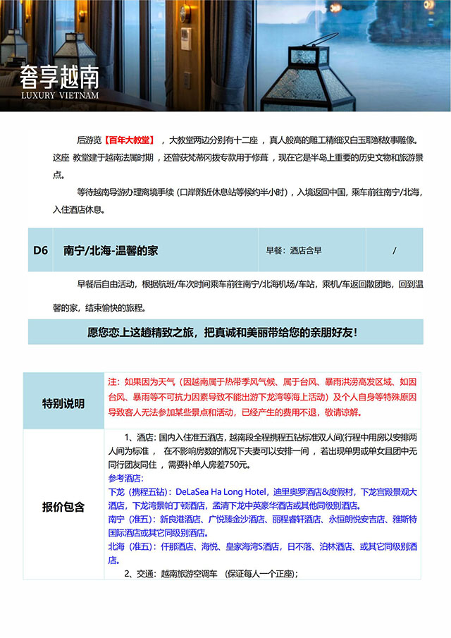 目前商品分类: 越南 -> 奢享6日(国内准五+五钻) 去结算