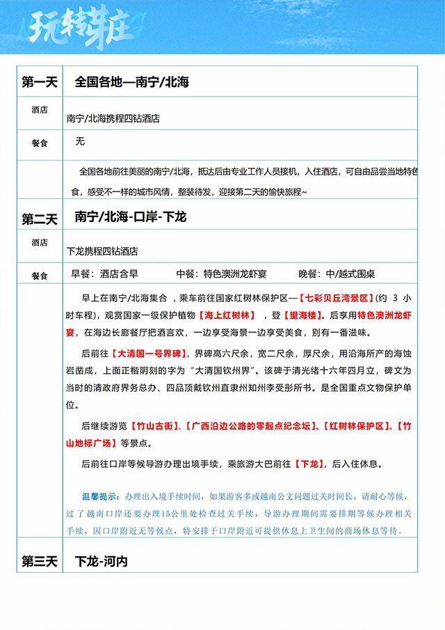 踏浪淘沙芽美胡5天 奇幻山海关8日 千屿千寻6日 明星越南6日